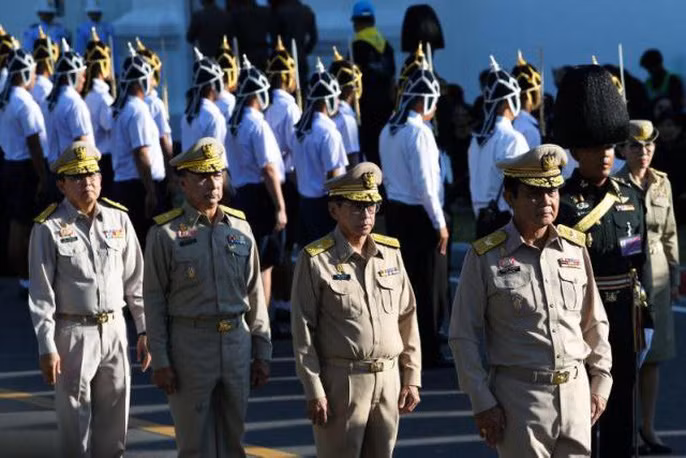 | Thủ tướng Thái Lan Prayut Chan-o-cha (ảnh trên, bên phải) và Công chúa Thái Lan Chakri Sirindhorn tham dự buổi tập tập dượt cho tang lễ hôm 21-10. Ảnh: REUTERS |