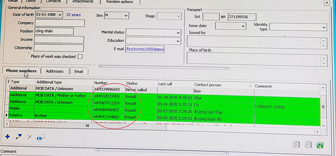 Theo tìm hiểu của PV, khi vay tiền khách phải cung cấp số điện thoại người thân để liên hệ khẩn cấp, cũng như cho phép công ty truy cập vào danh bạ điện thoại người vay. Khi gọi điện cho khách không được, hệ thống sẽ tự động gọi cho người thân, bạn bè của khách.