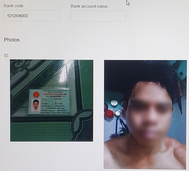 Ảnh chân dung, CMND của khách vay tiền được lưu trong hệ thống