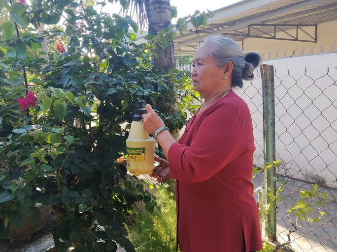 | Niềm vui tuổi già của y tá Nguyễn Thị Tuất là những chuyến đi thăm đồng đội, chăm sóc vườn tược và vui vẻ với con cháu |
