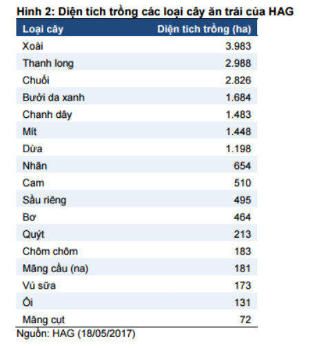 Chuối: Dự kiến năm 2017 thu được 50.000 tấn, mang lại doanh thu khoảng 843 tỷ đồng, lợi nhuận gộp 354 tỷ đồng.