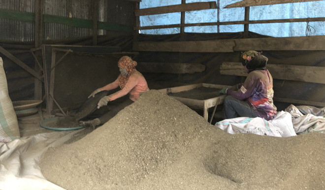 Hai phụ nữ ở làng Tuana Tuha, Đông Kalimantan sàng lá kratom. Ảnh: Resty Woro Yuniar.