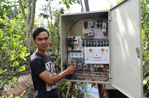 | Với hệ thống tưới tự động, Quốc Huy đã tham dự Hội thi sáng tạo kỹ thuật tỉnh Lâm Đồng lần thứ 8 năm 2017 và đạt giải Ba. Hiện, đã có nhiều khách hàng đặt mua và thuê Huy lắp đặt hệ thống trong vườn. Giá mỗi bộ điều khiển khoảng 30 triệu đồng/ha. |