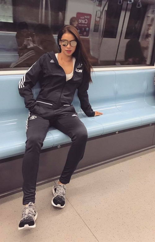 Chỉ với trang phục thể thao, Minh Tú vẫn chinh phục người đối diện bởi vóc dáng chuẩn.