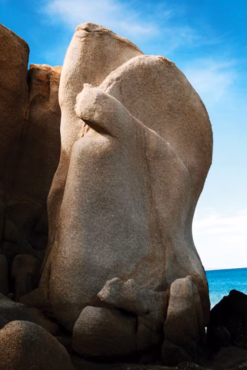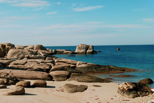 | Cù lao Câu có những bãi đá với đủ các hình khối kỳ thú. |