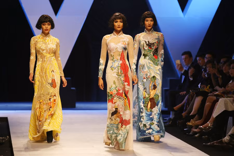 Thế nên, nếu chiếc áo khoác của Chanel đã lấp lánh phép màu thời trang thuần khiết, thì chiếc áo dài thân thương hẳn sẽ lộng lẫy kỳ ảo hơn với kho tàng cổ tích dân gian đã in hằn trong ký ức ấu thơ đẹp đẽ của mỗi chúng ta”.