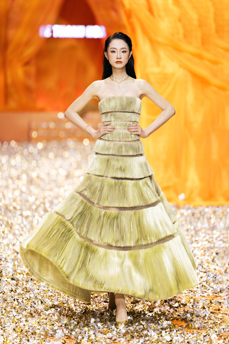 Không chỉ có dàn vedette là những chân dài đình đám như Thanh Hằng, Lan Khuê, Lương Thùy Linh, Minh Triệu và Minh Tú, show thời trang giới thiệu bộ sưu tập Resort 2025 mang tên Golden Heritage của nhà thiết kế Lê Thanh Hòa còn có sự góp mặt của Lê Hoàng Phương, Như Vân, Huỳnh Tú Anh, Quỳnh Anh...