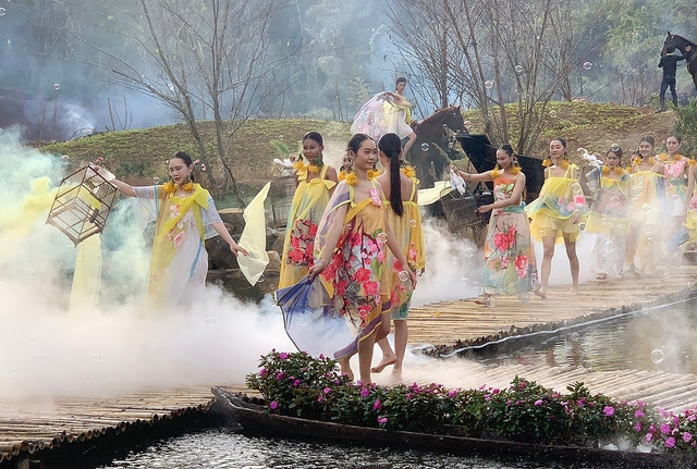 Chiều 31.12.2023, chương trình ca nhạc thời trang 'Măng Đen - Thiên đường hồng' diễn ra với sự tham gia biểu diễn của hàng trăm ca sĩ, người mẫu tại hồ Dambri, Măng Đen, Kon Tum. Khán giả vô cùng thích thú khi ca sĩ - NSND Thanh Lam xuất hiện trong chương trình.