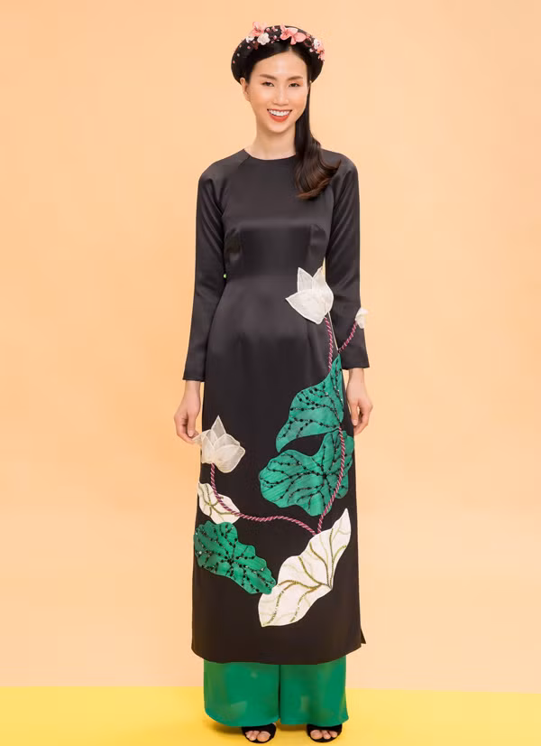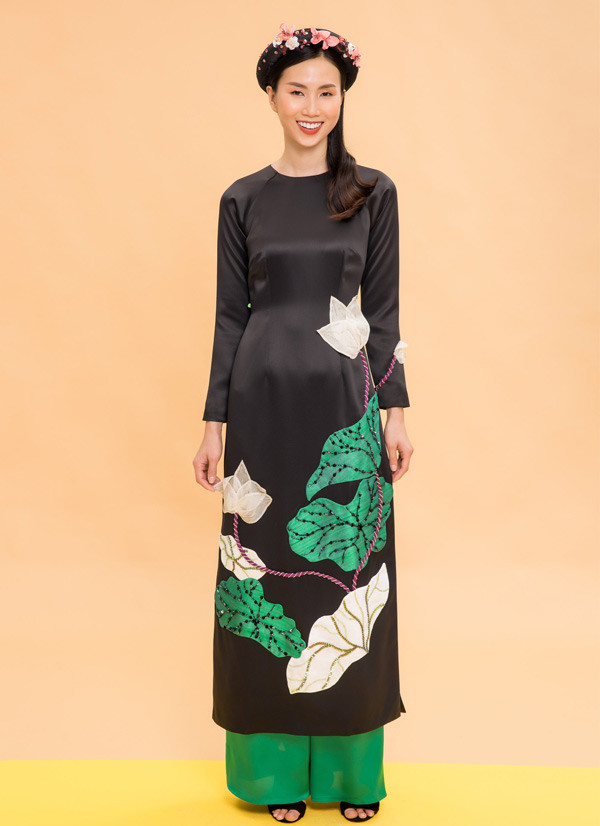 | Thanh Thủy giới thiệu sưu tập áo dài hoa sen của nhà thiết kế Thủy Nguyễn. |