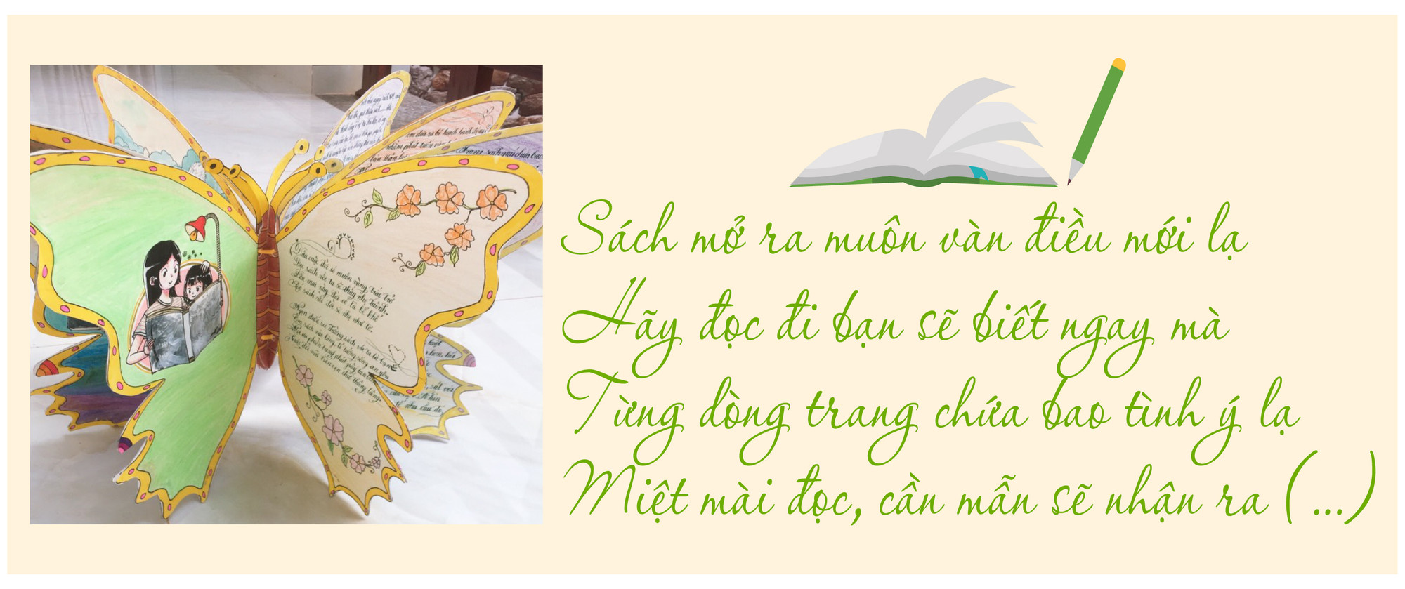 Cũng thiết thực góp phần lan tỏa văn hóa đọc là bài dự thi đạt giải nhất nội dung “Bài thơ khuyến đọc hay nhất” của 2 em Trần Ngọc Bảo Châu-Võ Khánh Huyền (lớp 6.3, Trường THCS Võ Thị Sáu, huyện Đak Đoa) có tên “Bạn của chúng ta”. Đó là những câu thơ thật nhẹ nhàng mà sâu sắc: “Sách mở ra muôn vàn điều mới lạ/Hãy đọc đi bạn sẽ biết ngay mà/Từng dòng trang chứa bao tình ý lạ/Miệt mài đọc, cần mẫn sẽ nhận ra (…)/Dẫu cuộc đời có muôn vàn trắc trở/Đọc sách rồi ta sẽ thấy nhẹ tênh/Dẫu mai này đời có là bể khổ/Có sách rồi đời sẽ nhẹ như tơ (…)/Trang sách quý chứa bao điều kỳ bí/Trí hơn người, bạn hãy đọc sách đi/Gói mộng ước và bao điều phía trước/Sách theo cùng để ta mãi bay xa”.