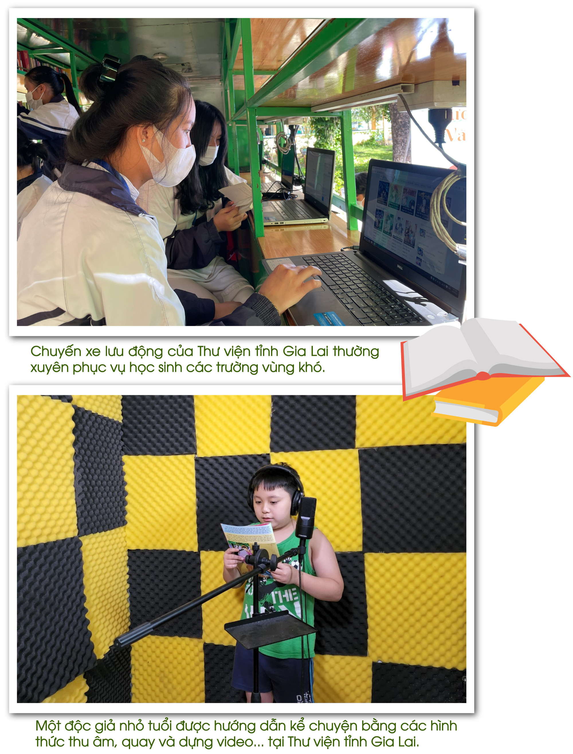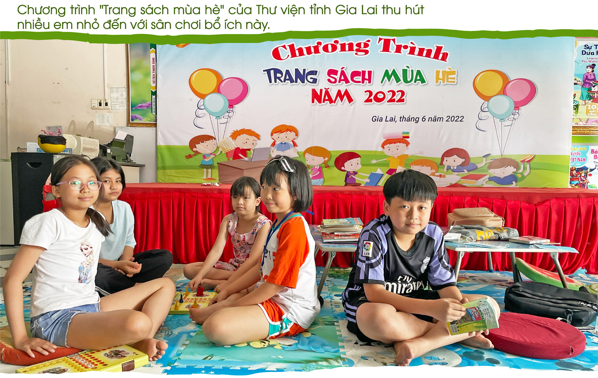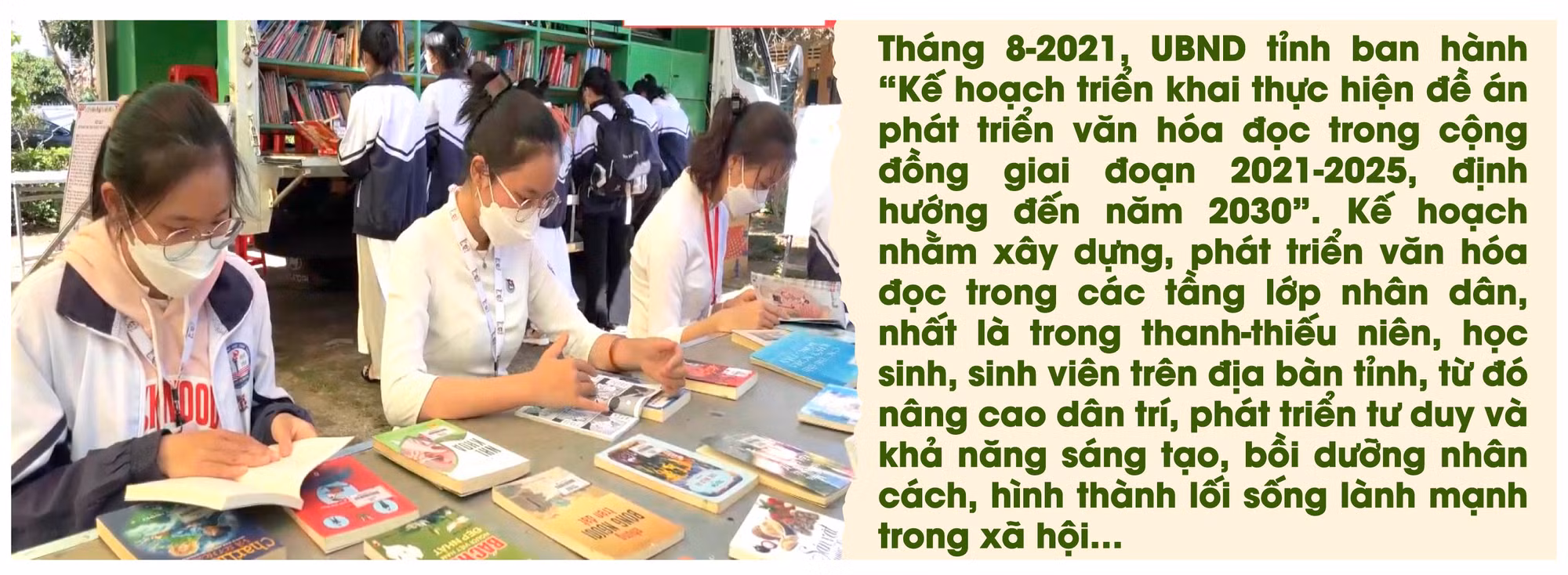 Cũng không thể không kể đến những cố gắng không mệt mỏi với nhiệm vụ xây dựng, phát triển văn hóa đọc của hệ thống thư viện tỉnh, huyện. Đáng chú ý, trong tháng 6 và 7-2022, Thư viện tỉnh đã mở chương trình “Trang sách mùa hè” với chuỗi hoạt động lý thú: phục vụ đọc sách tự chọn; tổ chức xe lưu động phục vụ độc giả vùng sâu, vùng xa; hướng dẫn độc giả nhỏ tuổi kỹ năng giới thiệu sách, kể chuyện bằng các hình thức thu âm, quay và dựng video... Thư viện càng là điểm đến hấp dẫn của các em thanh thiếu nhi khi tổ chức được những buổi sinh hoạt tập thể và trò chơi trí tuệ sau giờ đọc sách như: cờ vua, cờ vây, cờ cá ngựa, ô ăn quan…