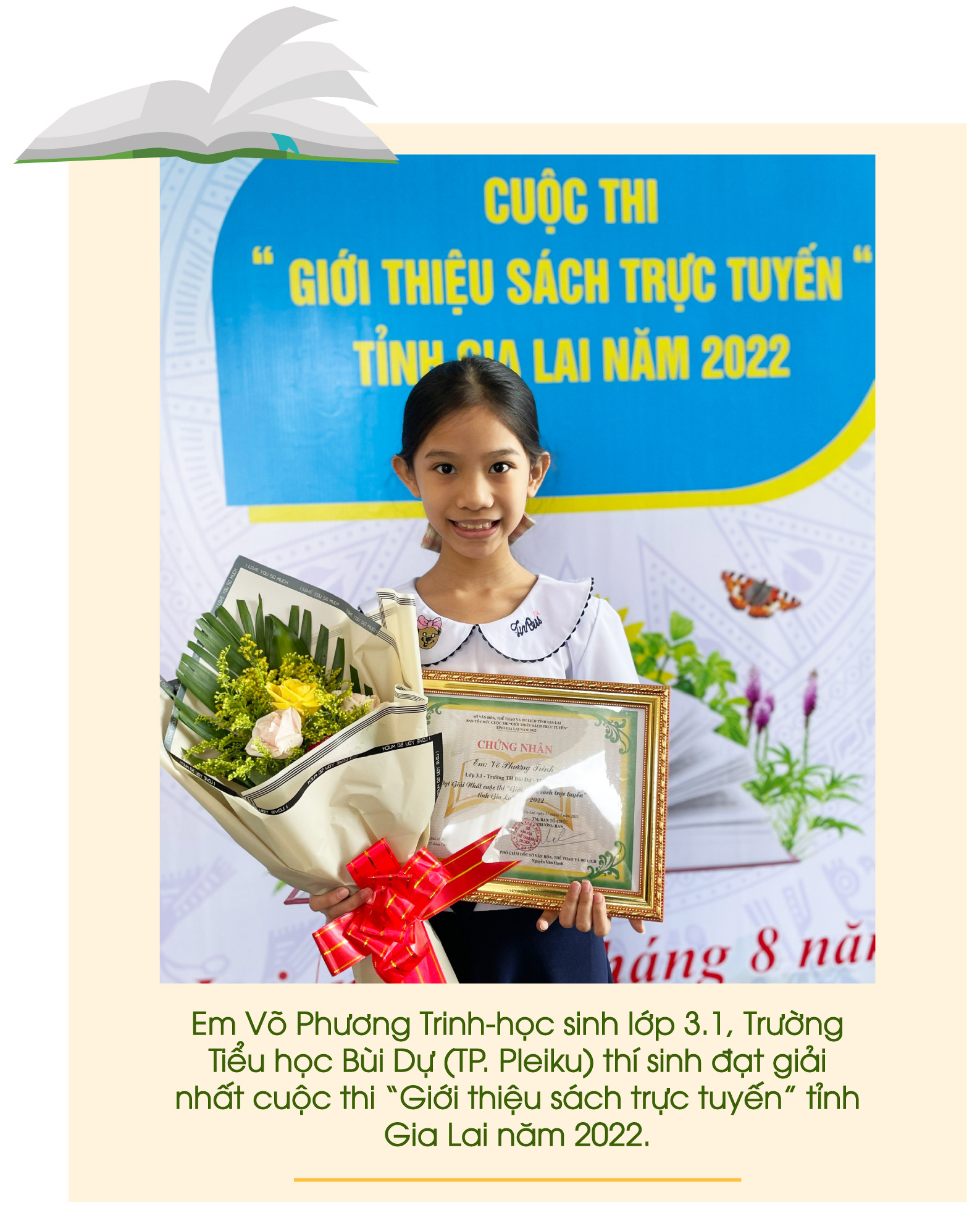 Là 1 trong 5 thí sinh đạt giải nhất cuộc thi “Giới thiệu sách trực tuyến”, em Võ Phương Trinh-học sinh lớp 3.1, Trường Tiểu học Bùi Dự (TP. Pleiku) chia sẻ: Tác phẩm em chọn để làm clip giới thiệu trực tuyến là tiểu thuyết “Đất nước đứng lên” của nhà văn Nguyên Ngọc. Đây là tác phẩm không dễ tiếp nhận đối với lứa tuổi thiếu nhi do có nhiều chi tiết lịch sử, song nhờ có cha mẹ cùng đọc sách và hỗ trợ một số khâu kỹ thuật khi làm clip nên em đã xuất sắc giành giải nhất. Trinh bày tỏ, em thích thú nhất với những đoạn viết về Anh hùng Núp cùng dân làng đánh Pháp. Qua clip giới thiệu sách này, em mong muốn giúp bạn bè hiểu thêm về vị anh hùng được ví như cánh chim đầu đàn của phong trào cách mạng Tây Nguyên, đồng thời ngày càng yêu thích việc đọc sách.