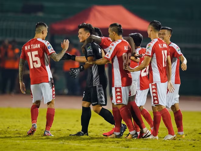 Tiến Dũng và đồng đội sau khi lọt vào tứ kết Cúp quốc gia 2020. ẢNH: ĐỘC LẬP