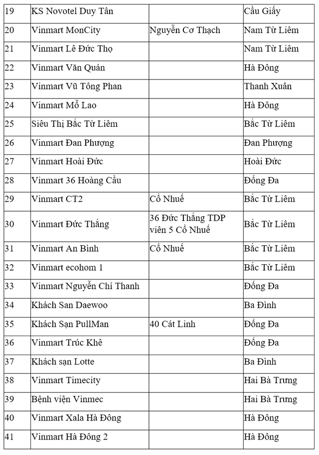 Tuy nhiên, đến tối 2.8, đã có thêm 14 cơ sở khác, chủ yếu là siêu thị Vinmart và Vinmart+, nâng tổng số siêu thị, cửa hàng tiện lợi trên địa bàn thành phố Hà Nội phải đóng cửa vì liên quan ca nhiễm lên 37.