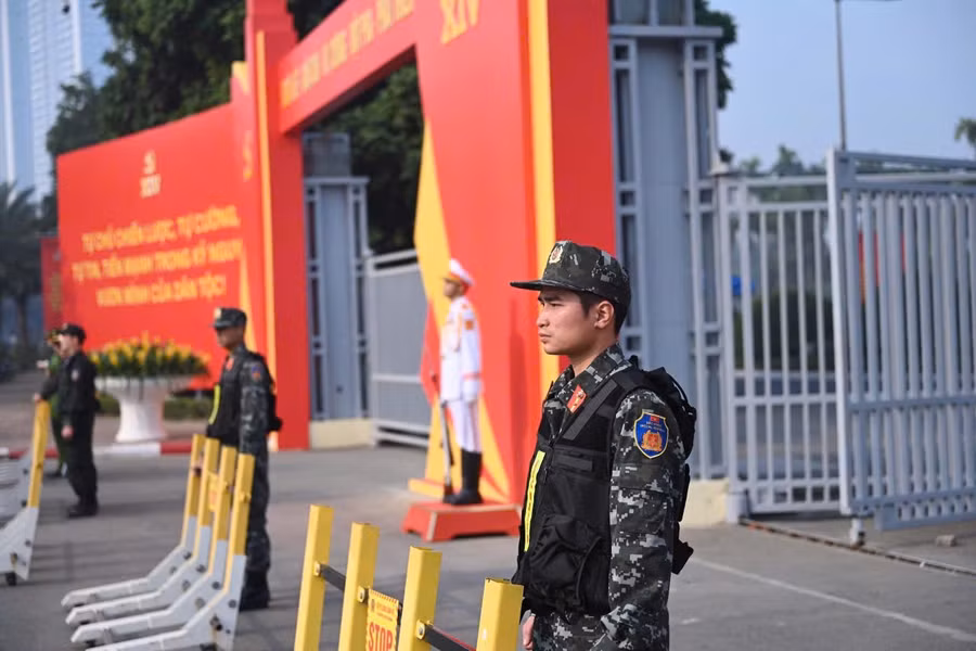 9 giờ, tại Trung tâm Hội nghị Quốc gia, lực lượng Đặc nhiệm triển khai đội hình, phương tiện và các thiết bị quan sát từ xa xung quanh mục tiêu bảo vệ. Mọi phương án đều được tính toán kỹ lưỡng, nhằm phát hiện sớm, áp chế và vô hiệu hóa kịp thời mọi nguy cơ có thể đe dọa an ninh, an toàn Đại hội. Cùng thời điểm, các tổ Cảnh vệ đồng loạt vào vị trí, tổ chức kiểm soát nghiêm ngặt tại các cổng ra vào khu vực bảo vệ.