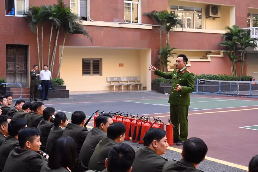Ngay sau đó, các CBCS tham gia lớp tập huấn nghiệp vụ bảo vệ sự kiện đặc biệt quan trọng và khách quốc gia, thực hành các kỹ năng xử lý tình huống phòng cháy, chữa cháy và cứu nạn, cứu hộ.