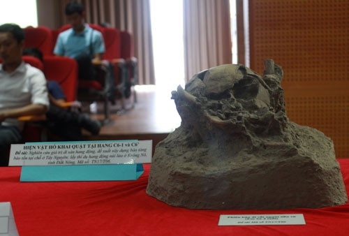 | Dấu vết di cốt người tiền sử được các nhà khoa học khai quật ở hang động núi lửa Krông Nô Ảnh: Như Lai |