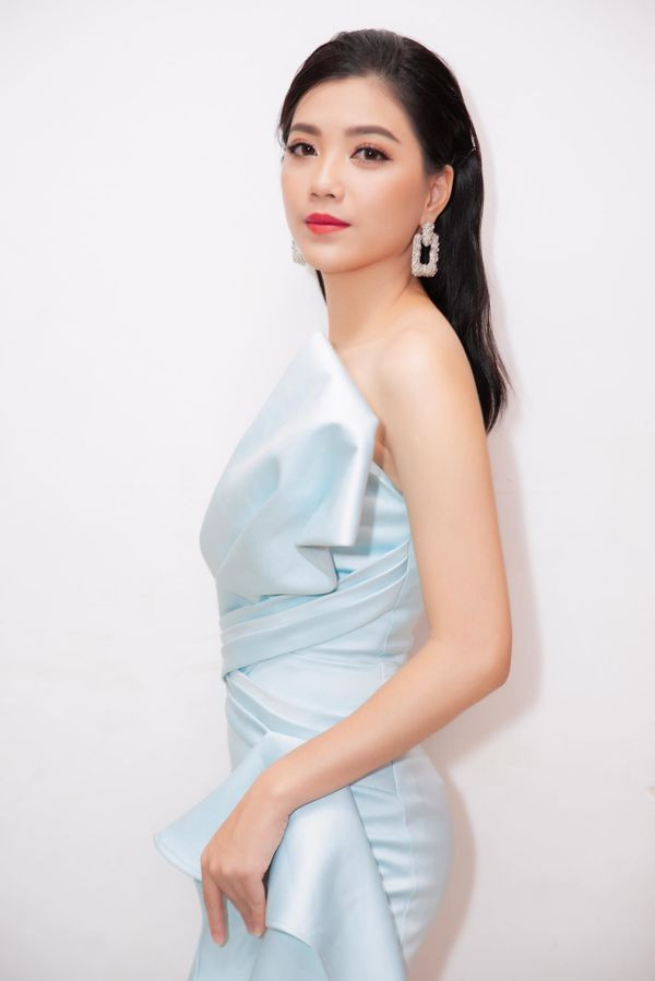 Tại sự kiện hop báo ra cuộc thi Hoa hậu Hoàn vũ Việt Nam 2019, Nguyễn Hoài Thương chọn bộ váy cocktail màu xanh dương hở lưng. Bộ váy giúp người đẹp khoe chiếc lưng đầy quyến rũ của mình, kết hợp với lối trang điểm và làm tóc rất hoa hậu.