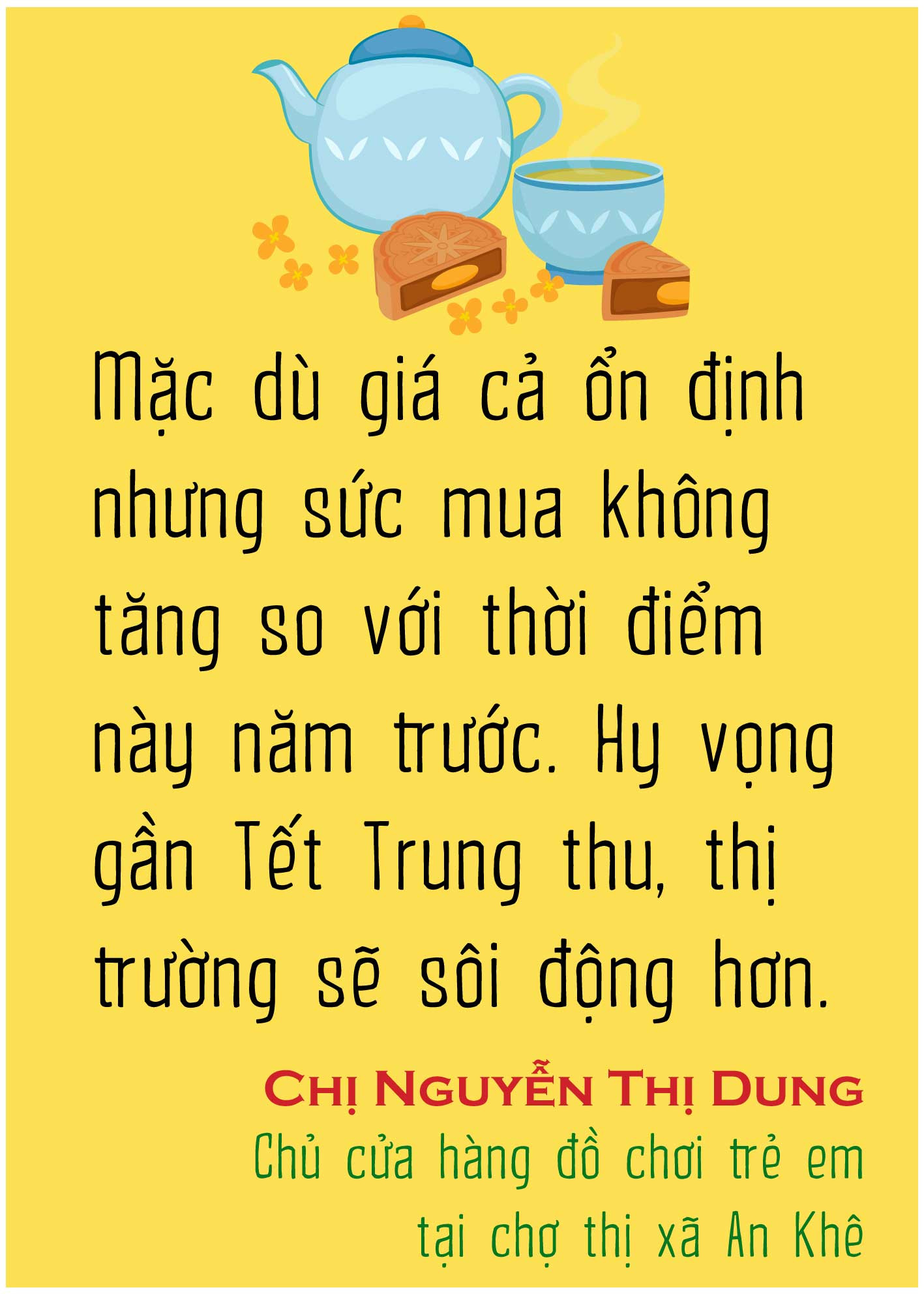 Tại quầy bánh Trung thu Đồng Khánh ở ngã tư Hoàng Văn Thụ-Trần Phú (TP. Pleiku), ngoài bánh thương hiệu Đồng Khánh còn bày bán thêm bánh pía, bánh Trung thu sản xuất ở Gia Lai và mặt hàng đồ chơi trẻ em. Anh Huỳnh Công Đức-nhân viên bán hàng-cho hay: Càng gần Tết Trung thu, sức mua càng tăng, nhưng chủ yếu vẫn là khách mua lẻ nên số lượng tiêu thụ dự kiến không bằng mọi năm. Năm nay, lượng hàng bán cho khách cơ quan, doanh nghiệp ít hơn rất nhiều. Có những doanh nghiệp mùa trước mua đến 100 hộp thì năm nay chỉ đặt 50 hộp. Hiện tại, lượng bánh nhập về đã tiêu thụ được một nửa, số còn lại hy vọng sẽ bán hết trong 1 tuần còn lại của dịp Trung thu.