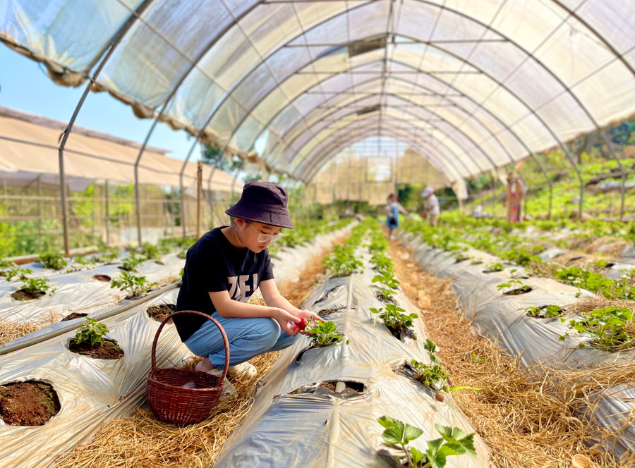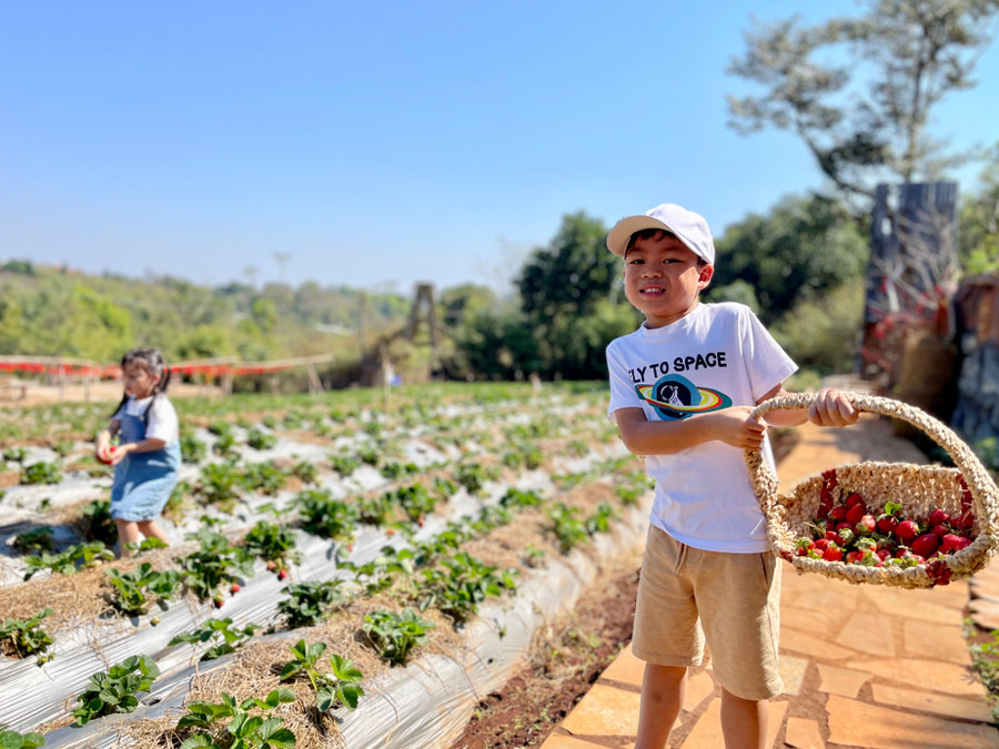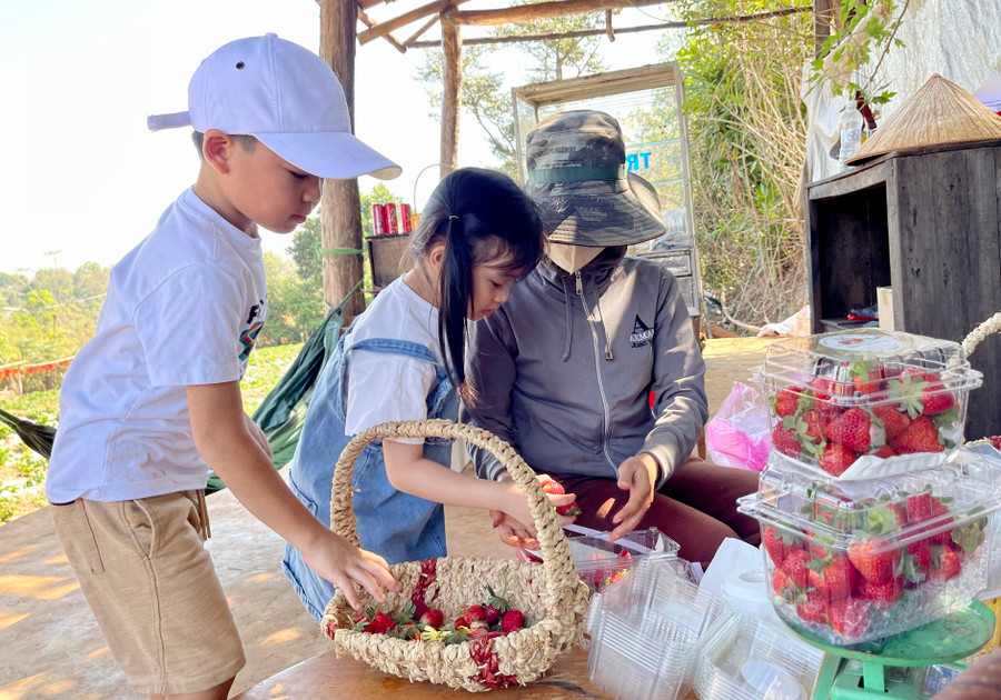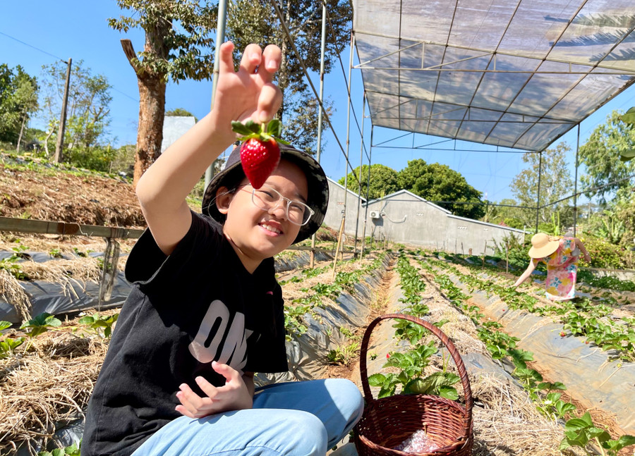 Anh Đào Văn Toàn-chủ vườn chia sẻ: “Hiện nay, các gia đình thường chọn những hoạt động thực tế ngoài trời để cho con trẻ trải nghiệm. Đặc biệt, vào những ngày gần Tết, khi các em học sinh được nghỉ, rất nhiều gia đình đã đến tham quan và trải nghiệm tự hái những trái dâu đỏ au chín mọng trong vườn. Đây là một hoạt động thú vị mang lại nhiều niềm vui cho trẻ em, cũng là thời gian thư giãn của người lớn khi được hoà mình vào không gian thiên nhiên. Khi trải nghiệm tại vườn, mọi người còn được tìm hiểu về quy trình canh tác hữu cơ, sản xuất sản phẩm sạch”.