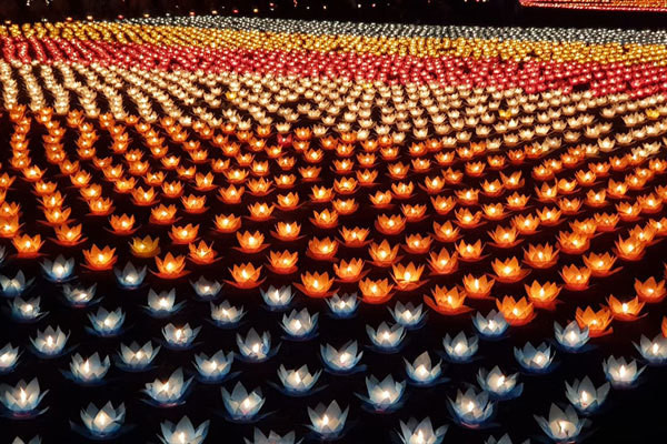 | Hàng ngàn trái tim có mặt trong đêm hoa đăng đã nhất tâm hướng nguyện, đồng cầu nguyện cho thế giới bình yên, nhân dân ấm no, hạnh phúc, xin bình an về muôn nơi, xứ xứ không còn đao binh, thiên tai chết chóc. Nâng ngọn nến trên tay, nguyện cầu cho Phật pháp trường tồn, nước nhà hưng thịnh. |