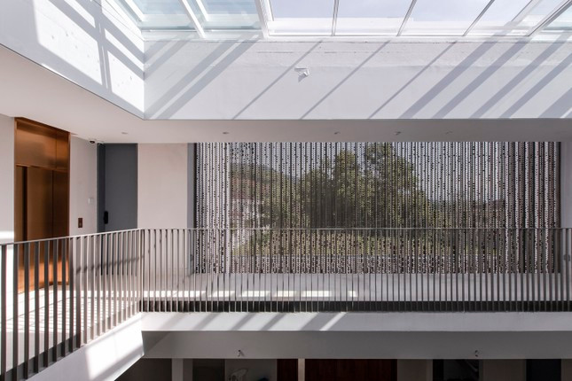 Giếng trời được thiết kế khá nhỏ để điều chỉnh lượng ánh sáng vừa phải cho khu trung tâm, nhờ những vòng tròn của cầu thang, ánh sáng được đưa đều khắp cho các khu vực lân cận.