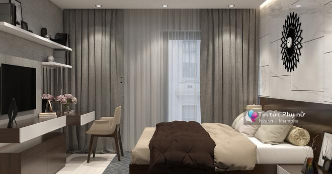 Phòng được thiết kế với cửa lớn, dễ dàng điều chỉnh độ sáng nhờ rèm 2 lớp.