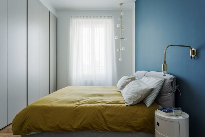 Phòng ngủ là góc riêng tư của chủ nhân nên màu sắc có phần bắt mắt hơn.