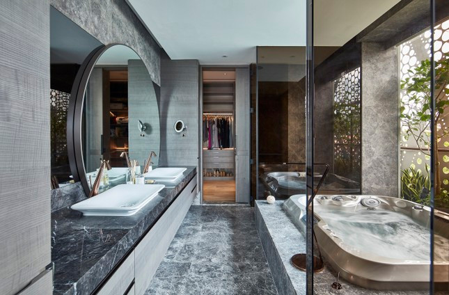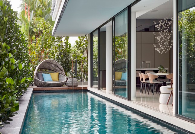 | Để cải thiện vi khí hậu bên trong ngôi nhà, khoảng sân vườn và bể bơi phân làn được bố trí ở tầng trệt, là nơi “trú ẩn” lý tưởng trong điều kiện thời tiết nắng nóng khắc nghiệt, đồng thời tạo khoảng đệm để không gian trong nhà mát mẻ hơn. |