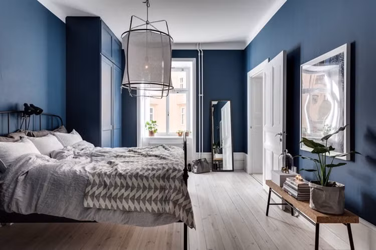 Kết hợp linh hoạt các tông màu xanh dương: Xanh dương - màu của biển cả, sắc màu tượng trưng cho sự bình yên, thanh mát. Và đó cũng chính là lý do chính mà xanh dương trở thành màu sắc yêu thích làm màu chủ đạo phòng ngủ, giúp gia chủ có được cảm giác bình yên, thanh thản, thư giãn trong căn phòng ngủ của mình, sau một ngày học tập và làm việc vất vả, mệt nhọc.