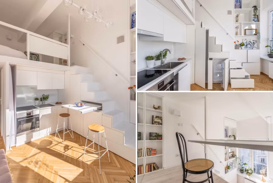 Trong căn hộ đẹp nhỏ đó, kiến trúc sư đã tận dụng tối đa không gian với những chi tiết thiết kế thông minh.