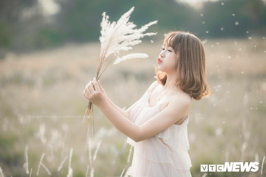 Giữa cánh đồng lau trắng muốt, nữ sinh Nguyễn Hải Yến xuất hiện với vẻ đẹp tinh khôi, trong sáng khiến nhiều người không thể rời mắt.