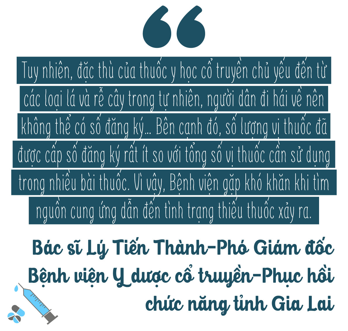 Một số bệnh viện, trung tâm y tế thiếu thuốc do bị nhà cung ứng tạm ngừng cung cấp là do công nợ quá hạn chưa thanh toán. Bác sĩ Lý Tiến Thành-Phó Giám đốc Bệnh viện Y dược cổ truyền-Phục hồi chức năng tỉnh-cho hay: Ngoài lý do ảnh hưởng bởi dịch Covid-19 không đấu thầu được thì việc thiếu thuốc một phần là do các nhà cung ứng tạm ngừng cung cấp vì đơn vị chưa trả tiền thuốc trước đó. “Ngoài ra, việc thiếu thuốc y học cổ truyền xuất phát từ Thông tư số 38/2021/TT-BYT của Bộ Y tế quy định về chất lượng dược liệu, vị thuốc cổ truyền, thuốc cổ truyền, có hiệu lực từ quý I-2022. Theo thông tư này, các cơ sở khám-chữa bệnh có trách nhiệm sử dụng vị thuốc y học cổ truyền đã được cấp số đăng ký.”-bác sĩ Thành nêu thực trạng.