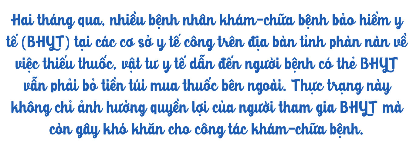 Không chỉ thiếu thuốc Tây, vật tư y tế mà các loại thuốc Đông y cũng thiếu. Theo một bác sĩ (nhân vật đề nghị giấu tên): “Vấn đề thiếu thuốc, vật tư y tế xảy ra không chỉ ảnh hưởng đến bệnh nhân nói chung, bệnh nhân có BHYT nói riêng mà còn gây khó khăn cho công tác khám-chữa bệnh. Thiếu thuốc nên khi kê đơn cho bệnh nhân, bác sĩ chỉ kê các loại thuốc thay thế. Tuy nhiên, có trường hợp ngay cả thuốc thay thế cũng hết nên bệnh nhân buộc phải mua ngoài. Còn khẩu trang, găng tay y tế… là những vật dụng bảo hộ rất cần thiết trong quá trình khám-chữa bệnh nhưng nhiều lúc bệnh viện không kịp trang bị, chúng tôi không đợi được cũng phải tự bỏ tiền túi ra mua”.