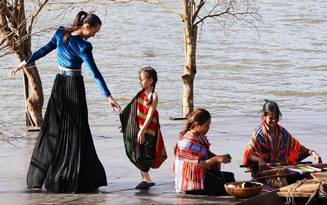 Chiều 11/11, UBND TP Đà Lạt phối hợp với nhà thiết kế (NTK) Minh Hạnh tổ chức chương trình biểu diễn thời trang thổ cẩm Tây Nguyên tại sân khấu rất nên thơ trên mặt hồ Xuân Hương.