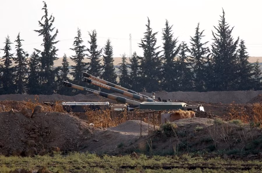 Pháo binh của quân đội Thổ Nhĩ Kỳ được bố trí ở biên giới Thổ Nhĩ Kỳ - Syria (ảnh: Reuters)