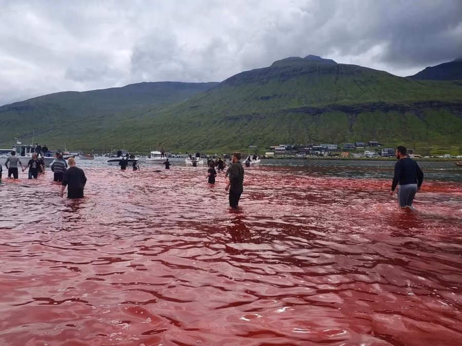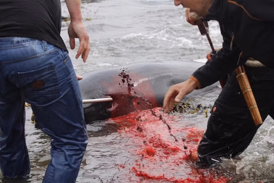 Trong sự kiện đi săn hàng năm theo truyền thống địa phương, các thợ săn ở quần đảo thuộc Đan Mạch đã giết 23 con cá voi hoa tiêu bên bờ vịnh để lấy thịt, mỡ dự trữ cho mùa đông.