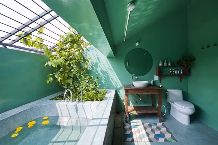 Phòng tắm lộ thiên nằm ở khu vực trên cùng.