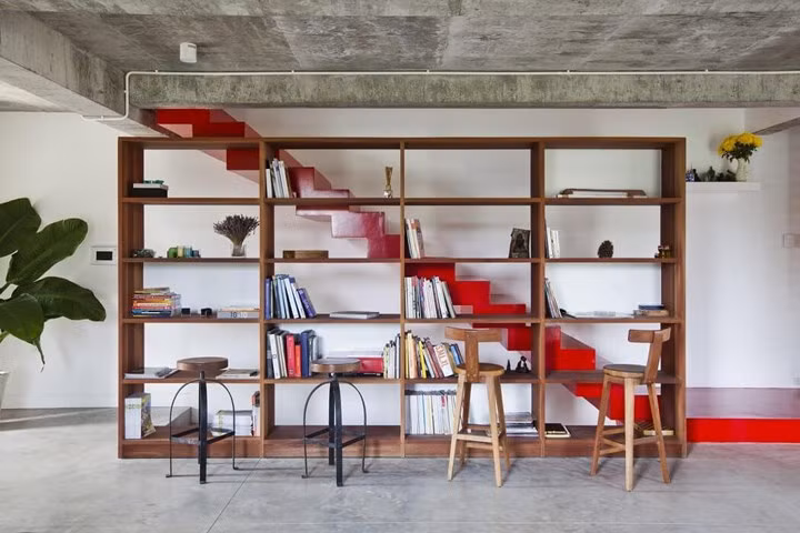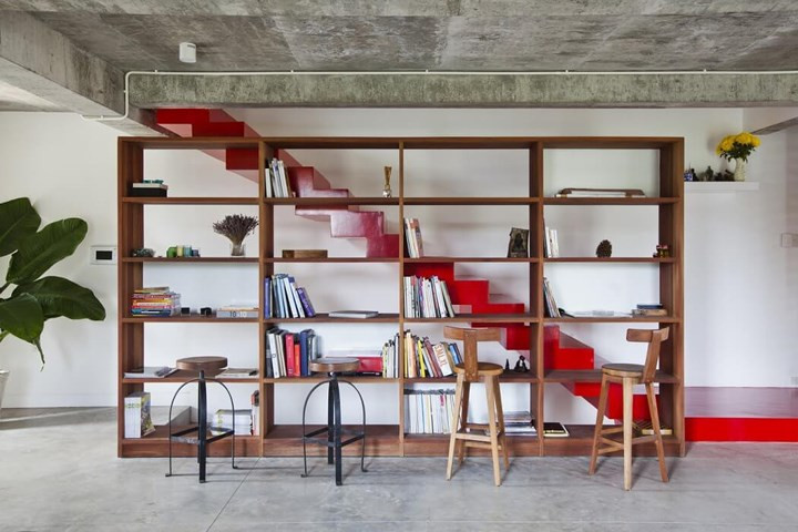 Thư viện sách thu nhỏ nằm ngay dưới chân cầu thang.