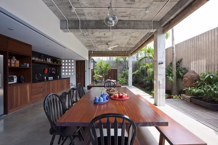 Thay vì thiết kế không gian sống khép kín, ngôi nhà lại được thiết kế theo kiểu nhà sàn nhằm thúc đẩy quá trình thông gió tự nhiên.