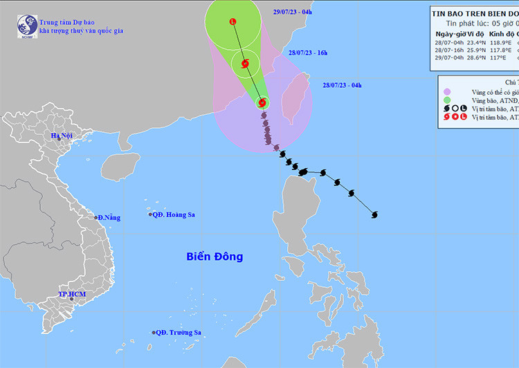 Ngoài ra, chiều tối và tối ngày 28/7, khu vực Nam Trung Bộ có mưa rào và dông, cục bộ có mưa to đến rất to với lượng mưa 10-30mm, có nơi trên 50mm.