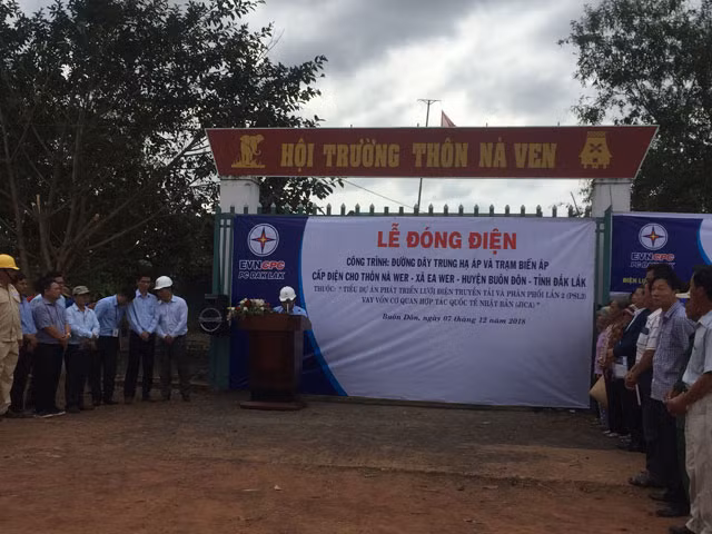| Ngày 7.12, công trình cấp điện cho thôn Nà Ven, xã Ea Wer đã chính thức hoàn thành, cấp điện cho dân sinh hoạt. Đây là công trình thuộc Tiểu dự án Cải tạo và phát triển lưới điện phân phối (JICA) tỉnh Đắk Lắk vay vốn Cơ quan hợp tác quốc tế Nhật Bản. Công trình do Tổng công ty Điện lực miền Trung làm chủ đầu tư và giao cho Công ty Điện lực Đắk Lắk quản lý dự án. Công trình có tổng mức đầu tư gần 2,5 tỷ đồng với khoảng 40 hộ được thụ hưởng từ dự án. Như vậy, suất đầu tư cho công trình tại buôn Nà Ven khá lớn, mỗi hộ tính bình quân được đầu tư trên 65 triệu đồng. Ngay sau khi nghiệm thu, đóng điện, Công ty Điện lực Đắk Lắk yêu cầu Điện lực Buôn Đôn nhanh chóng triển khai lắp đặt công tơ, hỗ trợ người dân đấu nối hệ thống điện trong nhà nhằm nhanh chóng có điện phục vụ sinh hoạt. Bên cạnh đó, đơn vị cũng hỗ trợ tối đa cho các hộ dân có nhu cầu sử dụng điện để bơm tưới, phục vụ sản xuất nông nghiệp. Điều này nhằm góp phần giúp người dân ổn định, phát triển kinh tế, vươn lên thoát nghèo cũng như thực hiện tốt mục tiêu xóa đói, giảm nghèo của địa phương. |