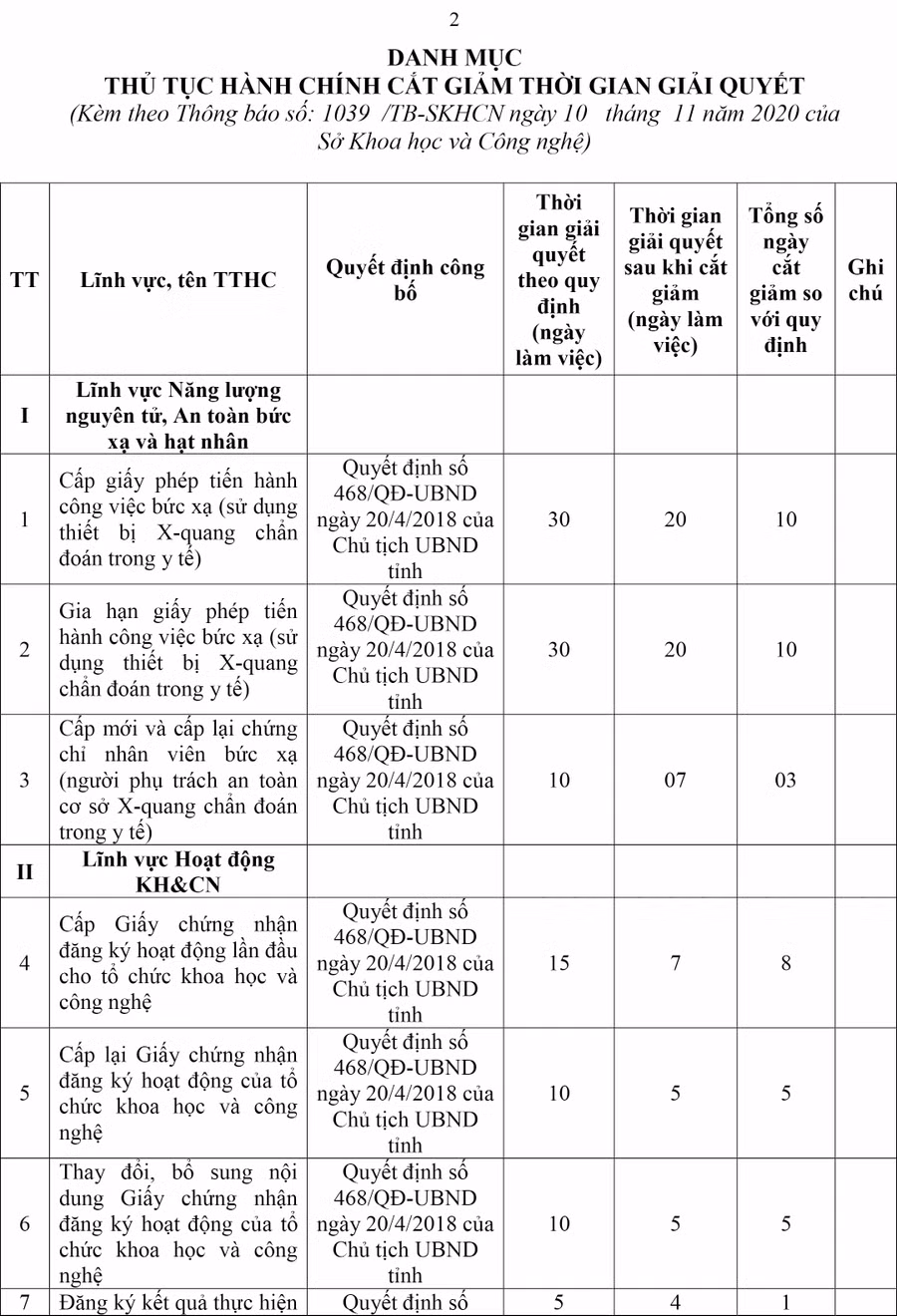 (GLO)- Sở Khoa học và Công nghệ tỉnh Gia Lai vừa có Thông báo số 1039/TB-SKHCN về việc cắt giảm thời gian giải quyết thủ tục hành chính thuộc thẩm quyền giải quyết của Sở Khoa học và Công nghệ.