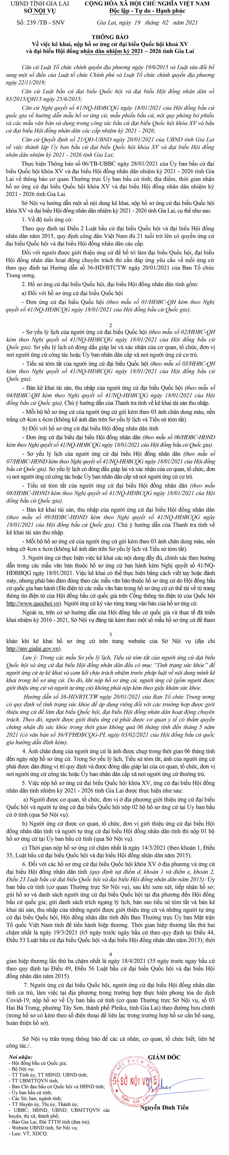 (GLO)- Ngày 19-2-2021, Sở Nội vụ tỉnh Gia Lai có Thông báo số 239/TB-SNV về việc kê khai, nộp hồ sơ ứng cử đại biểu Quốc hội khóa XV và đại biểu HĐND nhiệm kỳ 2021-2026 tỉnh.