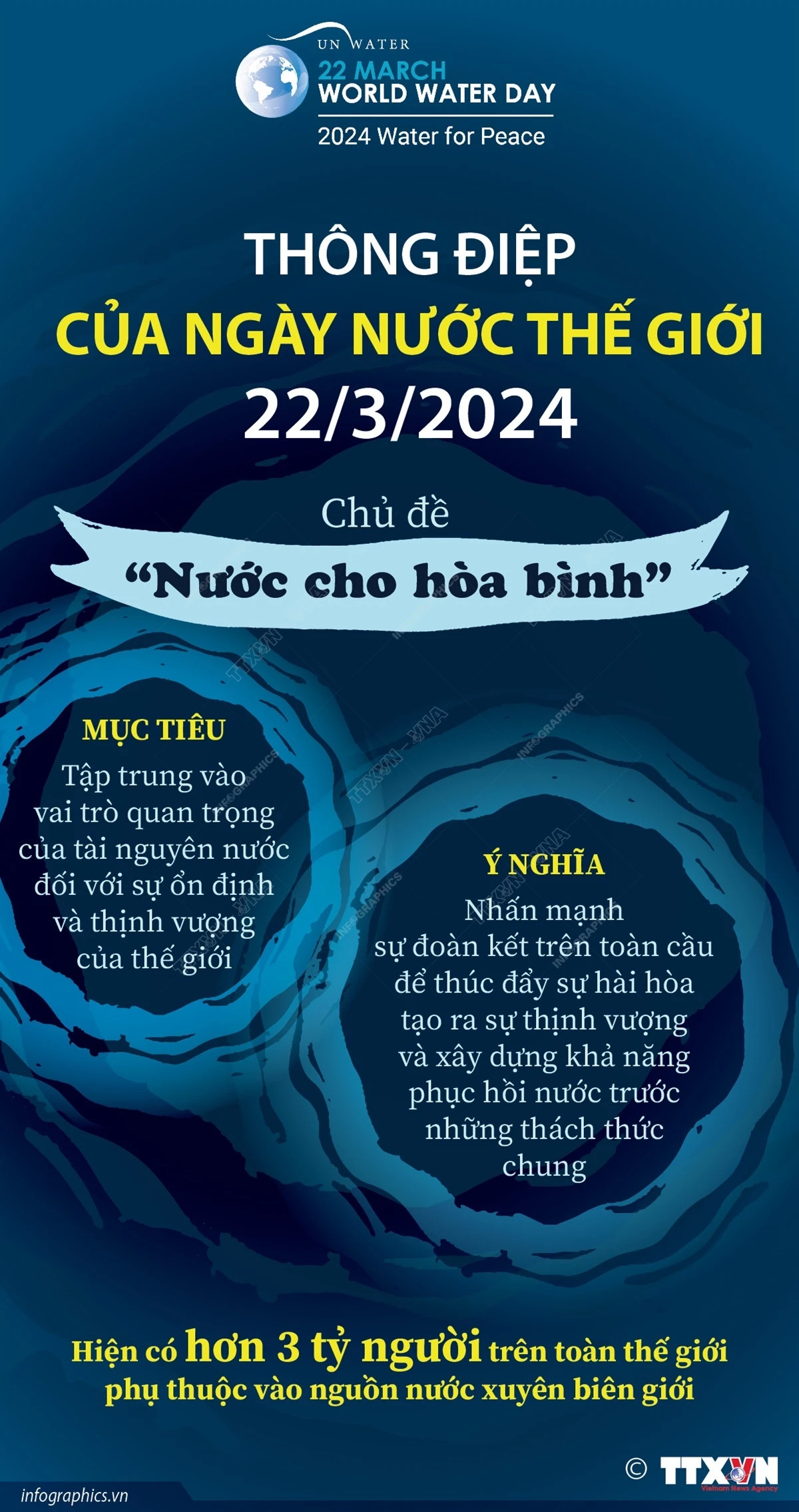 Ngày Nước Thế giới 22/3/2024 được Liên hợp quốc phát động ̣với chủ đề “Nước cho hòa bình” tập trung vào vai trò quan trọng của tài nguyên nước đối với sự ổn định và thịnh vượng của thế giới.