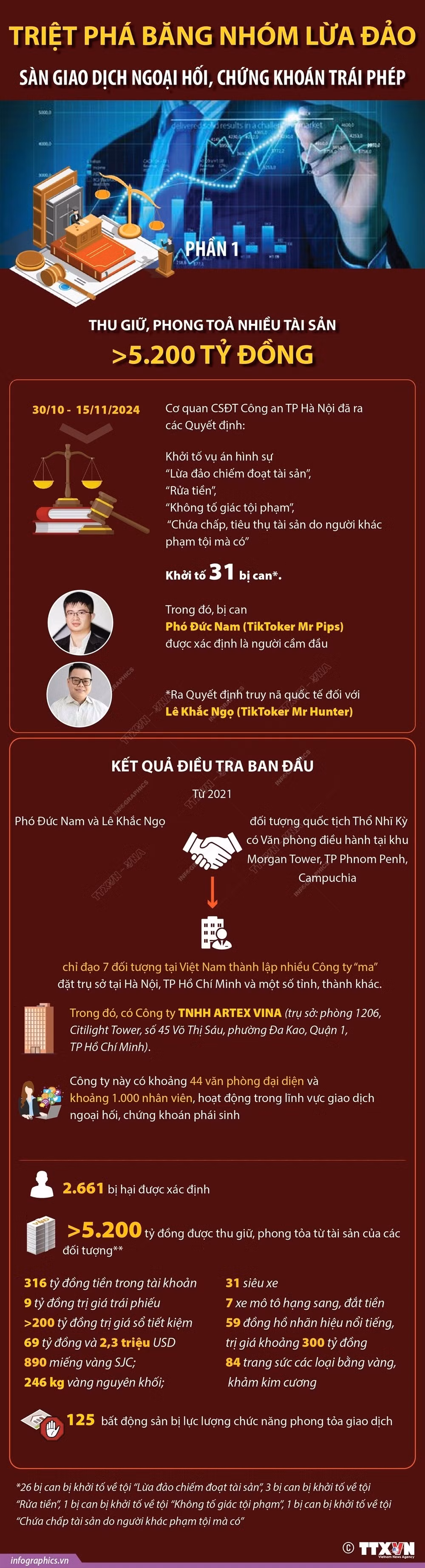 Đến nay, Công an thành phố đã xác định được 2.661 bị hại trên toàn quốc; thu giữ, phong tỏa nhiều tài sản của các đối tượng, ước tính hơn 5.200 tỷ đồng; phong tỏa giao dịch đối với 125 bất động sản.