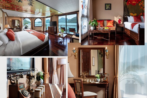 | Không gian bên trong du thuyền như một triển lãm đậm dấu ấn văn hóa, lịch sử. (Ảnh: CTV/Vietnam+) |