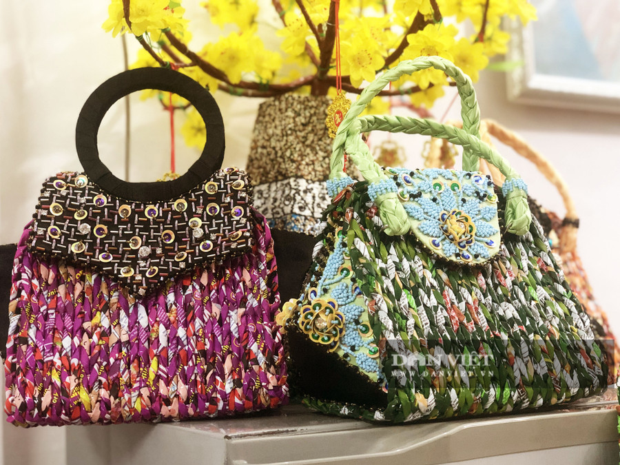| Ít ai nghĩ rằng, bằng chất liệu vỏ mì gói có thể tạo nên những chiếc túi xách đầy tính thẩm mĩ như thế này. Ảnh: M.A. |