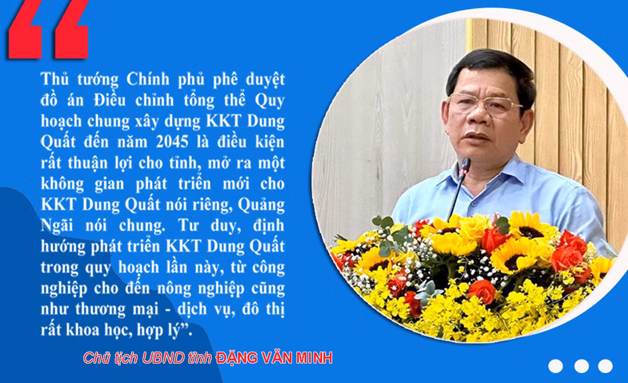 Theo quy hoạch, KKT Dung Quất phát triển thành một trong những trung tâm kinh tế biển năng động, với nền kinh tế tổng hợp đa ngành, đa lĩnh vực quan trọng của quốc gia. Lấy cảnh quan đô thị biển làm sức hấp dẫn, lấy nền tảng cơ sở hạ tầng phát triển để đẩy mạnh kinh tế biển, hướng đến sự thịnh vượng.