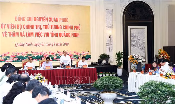 Thủ tướng Nguyễn Xuân Phúc làm việc với cán bộ chủ chốt tỉnh Quảng Ninh. Ảnh: Thống Nhất/TTXVN
